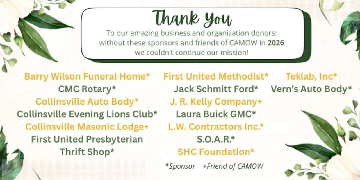 Sponsors of CAMOW are donors of $100 or more, whose support is greatly appreciated!